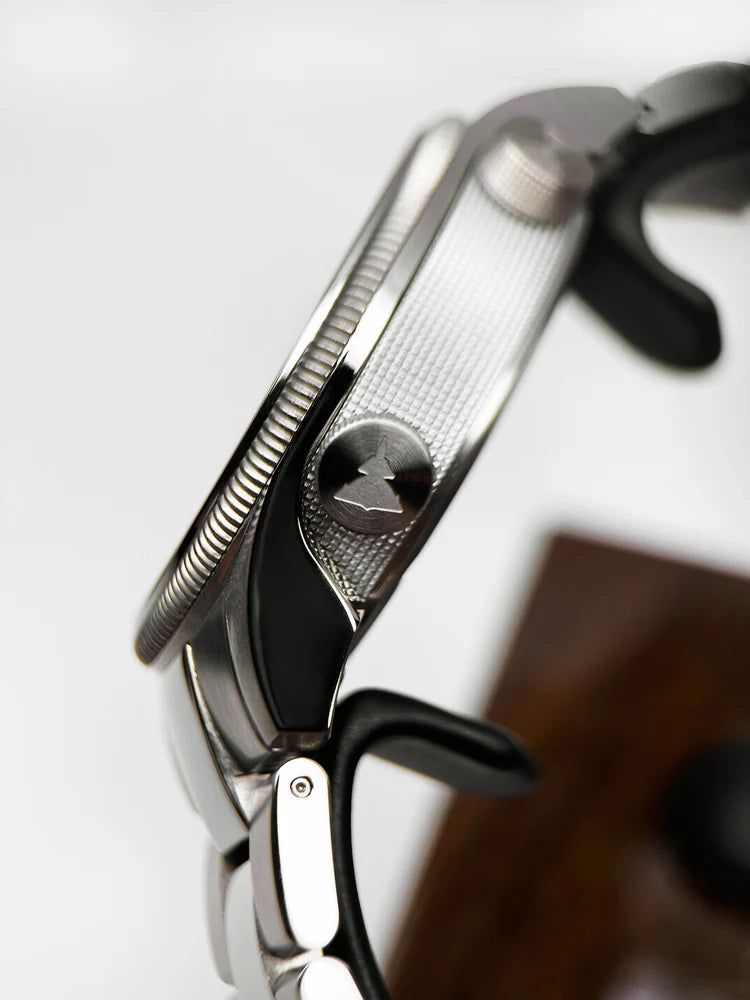 Drawing inspiration from Sweden’s rich aviation history, The Viggen offers the wearer an easy-to-read dial in a classic cockpit design, with white numerals, and large hands.