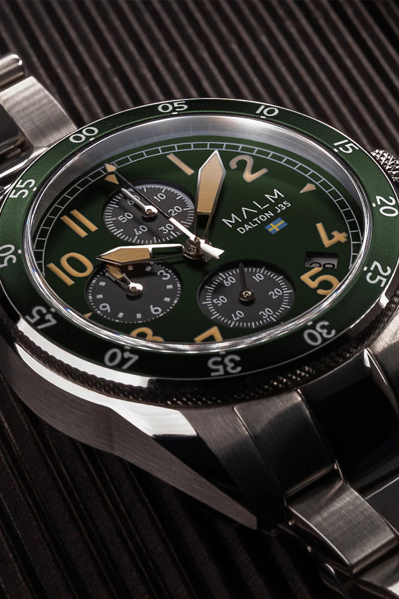 The original limited-edition Dalton J35 Chronograph 41 sold out quickly and has since become one of the most sought-after timepieces from MALM. We are thrilled to reintroduce this iconic watch with a fresh, updated design.
