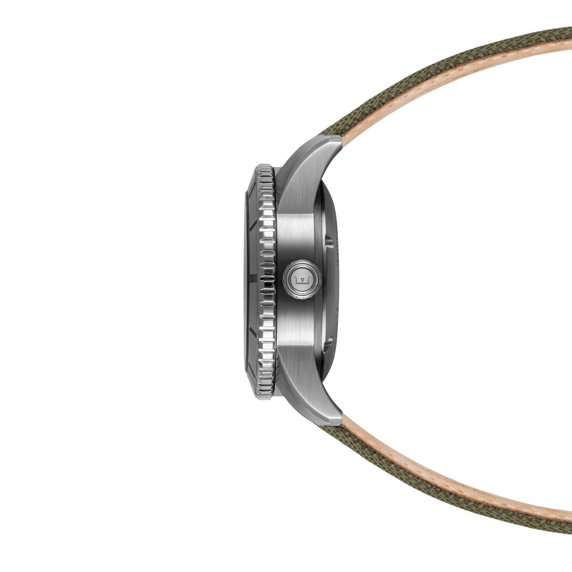 A sporty diving watch with intricate detailing, made of stainless steel capable of withstanding water pressure equivalent to 1000 meters. The Deep Diver Steel is equipped with a high-quality Swiss automatic movement with a date display. It features a scratch-resistant sapphire crystal and measures 43 mm in diameter excluding the crown and rotating bezel. The EPOCH Deep Diver is equipped with a helium valve – a feature developed for use by professional deep-sea divers.