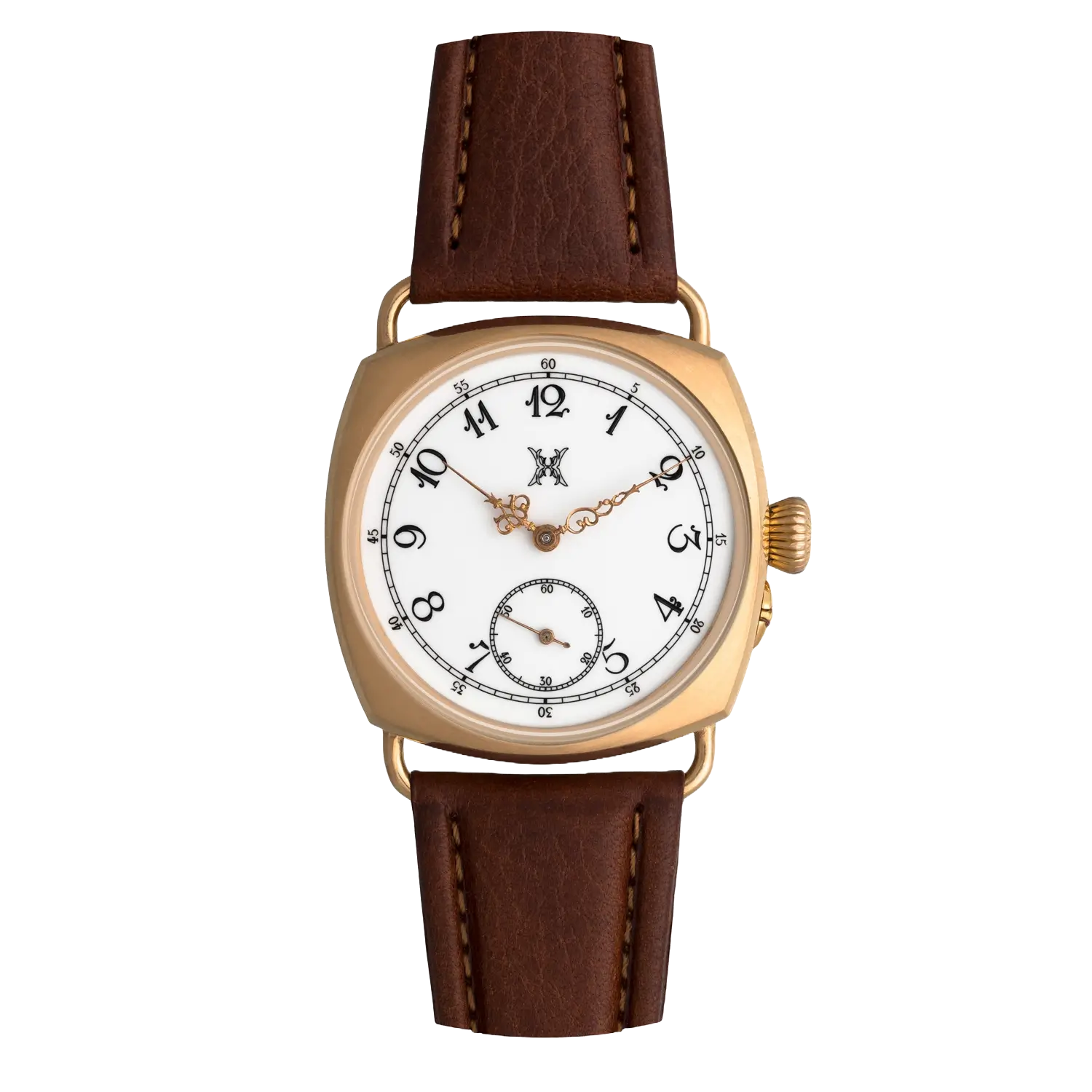 Oak bark-tanned leather from Böle Garveri, 24/20 mm. Solid 18 K gold folding clasp with hand-engraved Henning Hammarlund monogram.