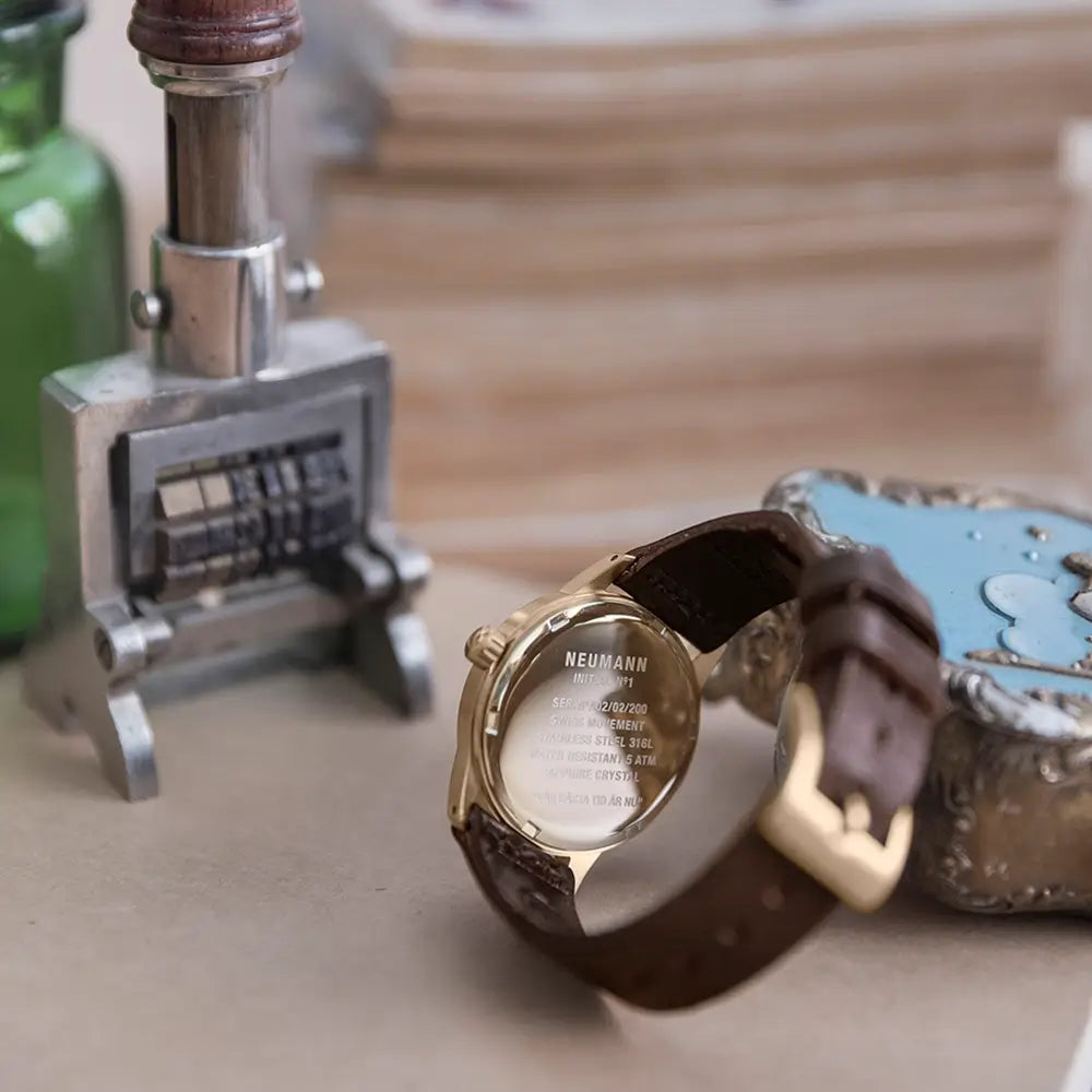 Initial No.1 is our first watch. This unisex model features beautiful raised sapphire glass and are available in two sizes, 36 mm and 40 mm. The case is made of brushed or gold plated stainless steel and are available in nine different combinations in the colors of; pearl, offwhite, blue, green, grey and black. The leather watch strap is offered in three different colors; cognac, brown or black and additional two stainless steel finishes; brushed or gold plated, that match the case. A tool is included to make it easy to change the wristband and vary the color of your watch.