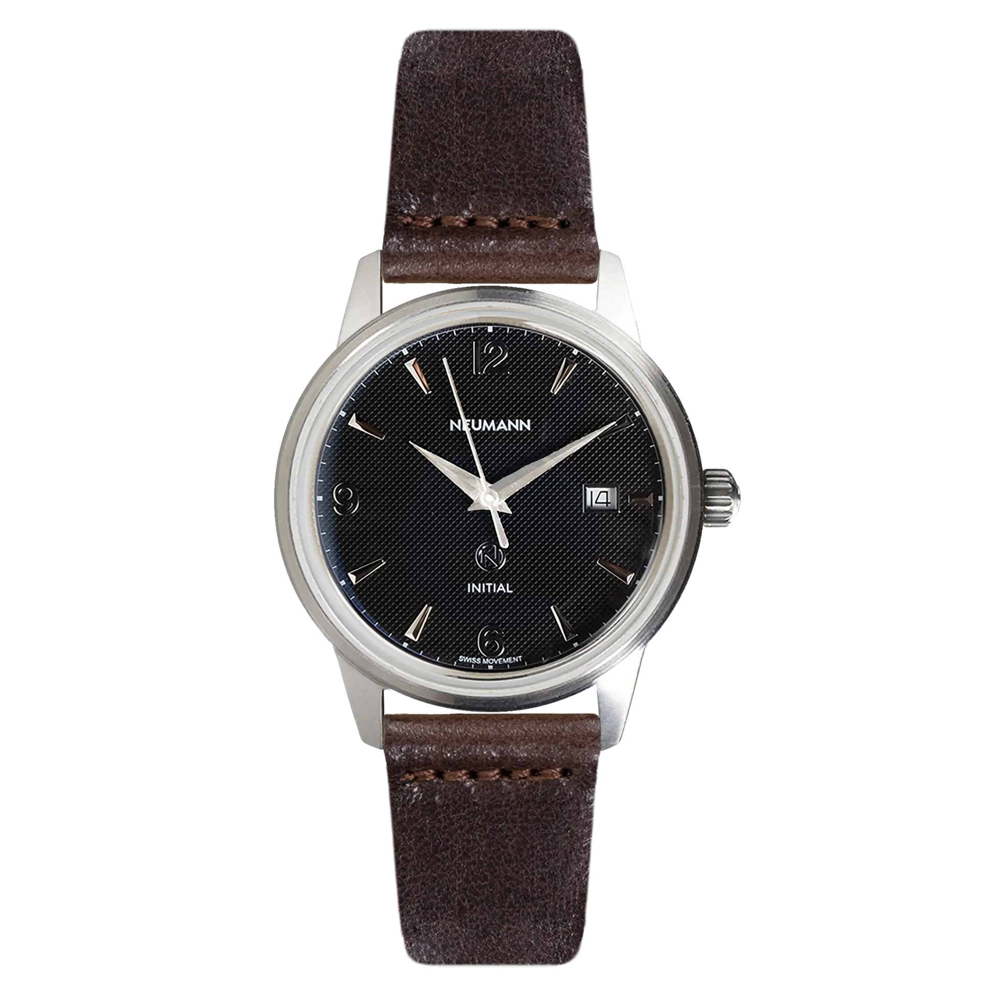 Initial No.1 is our first watch. This unisex model features beautiful raised sapphire glass and are available in two sizes, 36 mm and 40 mm. The case is made of brushed or gold plated stainless steel and are available in nine different combinations in the colors of; pearl, offwhite, blue, green, grey and black. The leather watch strap is offered in three different colors; cognac, brown or black and additional two stainless steel finishes; brushed or gold plated, that match the case. A tool is included to make it easy to change the wristband and vary the color of your watch.