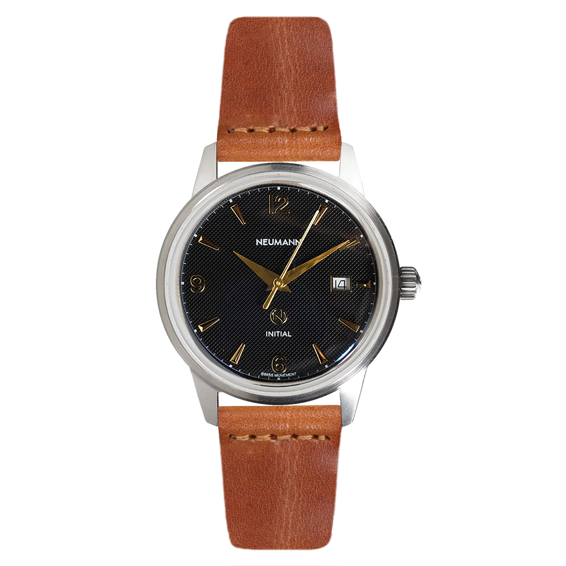 Initial No.1 is our first watch. This unisex model features beautiful raised sapphire glass and are available in two sizes, 36 mm and 40 mm. The case is made of brushed or gold plated stainless steel and are available in nine different combinations in the colors of; pearl, offwhite, blue, green, grey and black. The leather watch strap is offered in three different colors; cognac, brown or black and additional two stainless steel finishes; brushed or gold plated, that match the case. A tool is included to make it easy to change the wristband and vary the color of your watch.