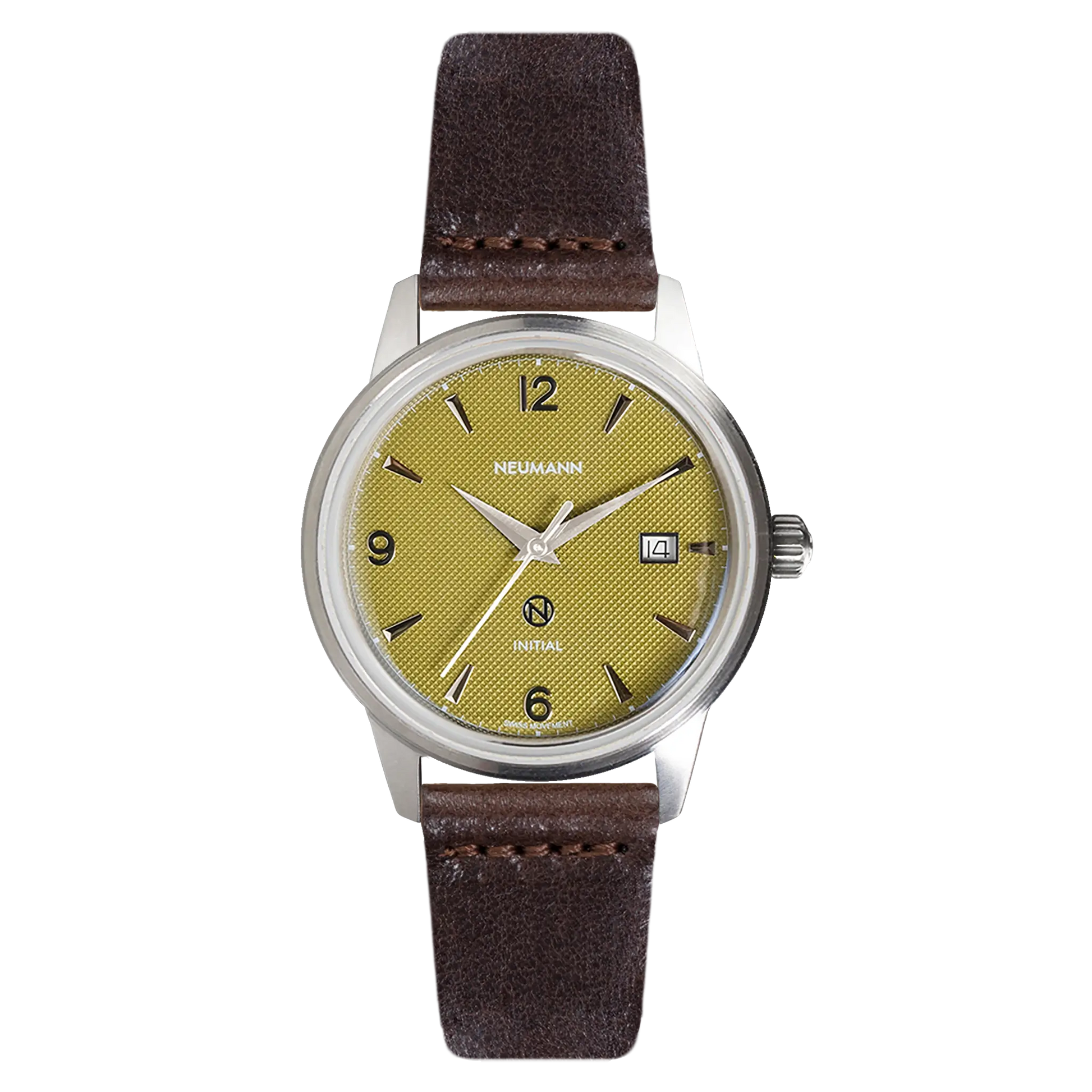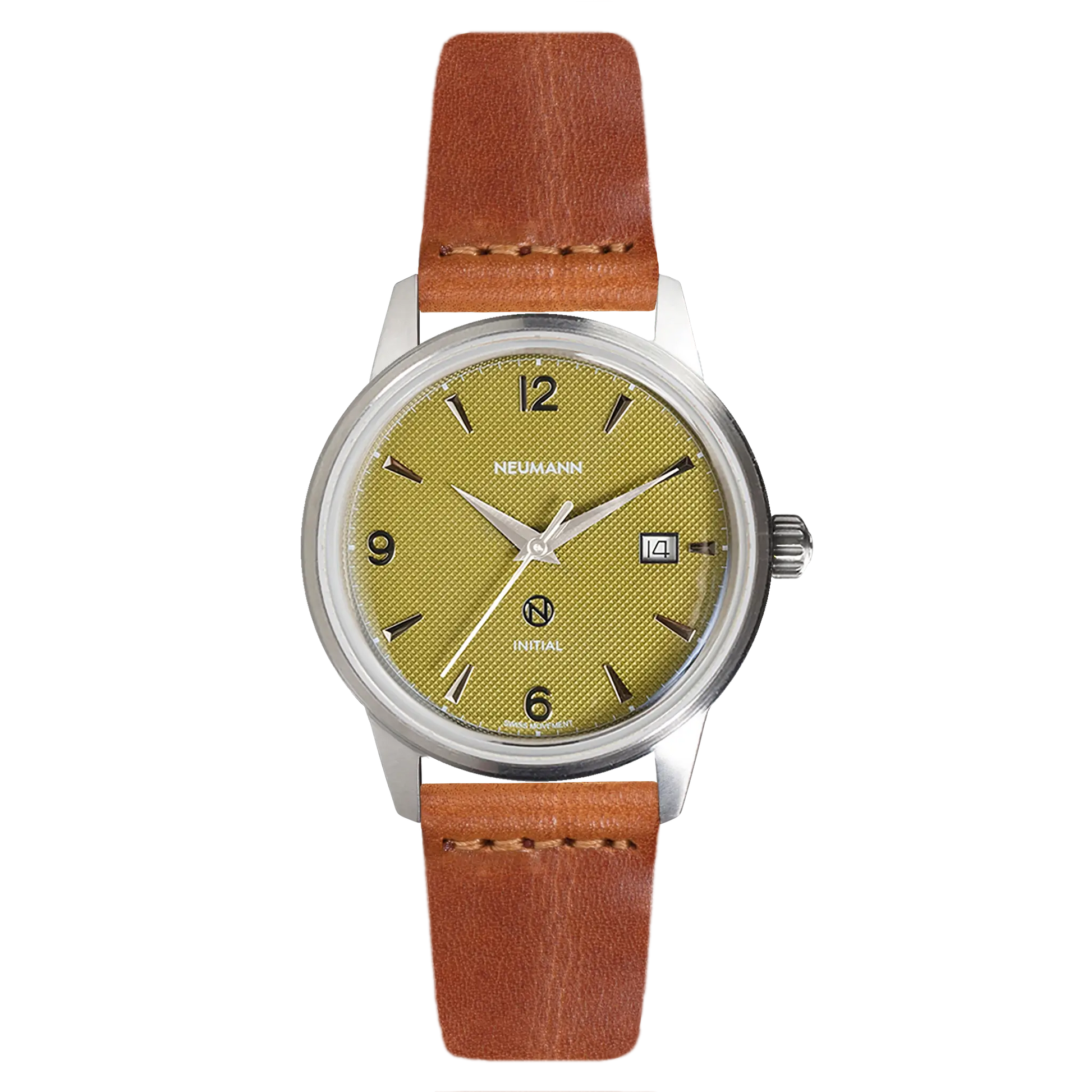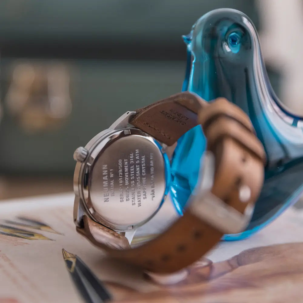 Initial No.1 is our first watch. This unisex model features beautiful raised sapphire glass and are available in two sizes, 36 mm and 40 mm. The case is made of brushed or gold plated stainless steel and are available in nine different combinations in the colors of; pearl, offwhite, blue, green, grey and black. The leather watch strap is offered in three different colors; cognac, brown or black and additional two stainless steel finishes; brushed or gold plated, that match the case. A tool is included to make it easy to change the wristband and vary the color of your watch.