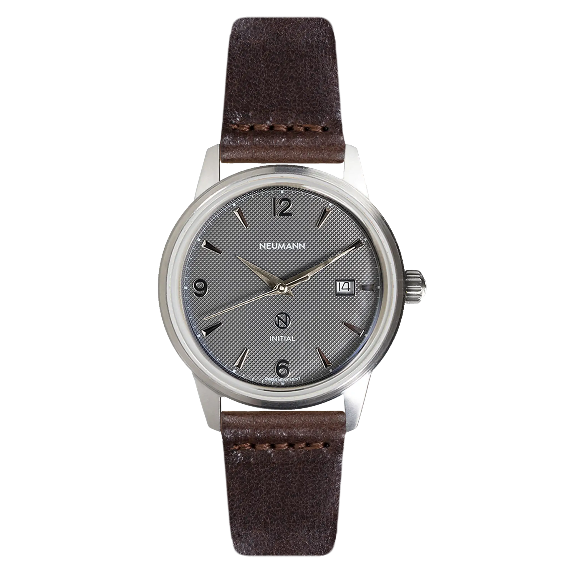Initial No.1 is our first watch. This unisex model features beautiful raised sapphire glass and are available in two sizes, 36 mm and 40 mm. The case is made of brushed or gold plated stainless steel and are available in nine different combinations in the colors of; pearl, offwhite, blue, green, grey and black. The leather watch strap is offered in three different colors; cognac, brown or black and additional two stainless steel finishes; brushed or gold plated, that match the case. A tool is included to make it easy to change the wristband and vary the color of your watch.