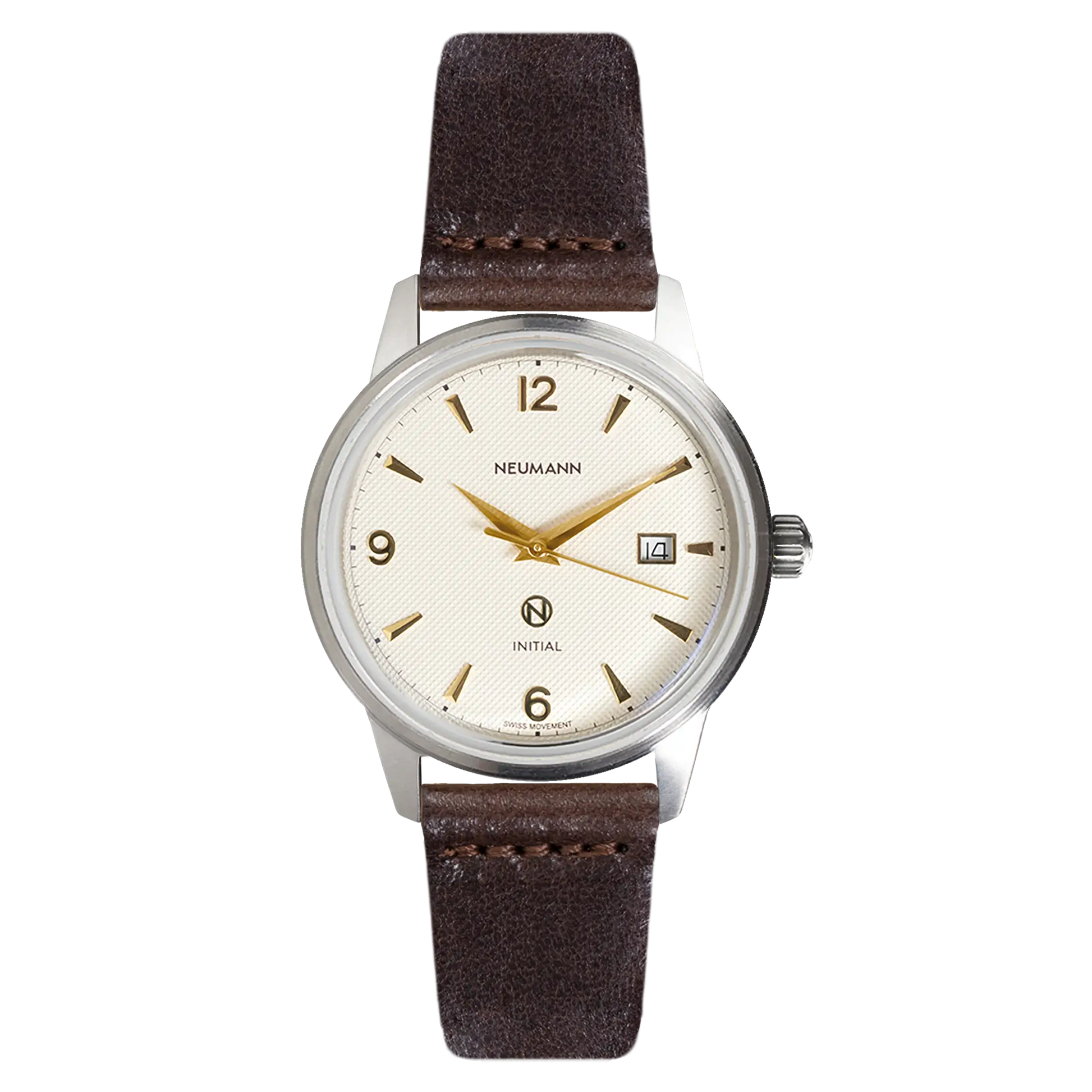 Initial No.1 is our first watch. This unisex model features beautiful raised sapphire glass and are available in two sizes, 36 mm and 40 mm. The case is made of brushed or gold plated stainless steel and are available in nine different combinations in the colors of; pearl, offwhite, blue, green, grey and black. The leather watch strap is offered in three different colors; cognac, brown or black and additional two stainless steel finishes; brushed or gold plated, that match the case. A tool is included to make it easy to change the wristband and vary the color of your watch.