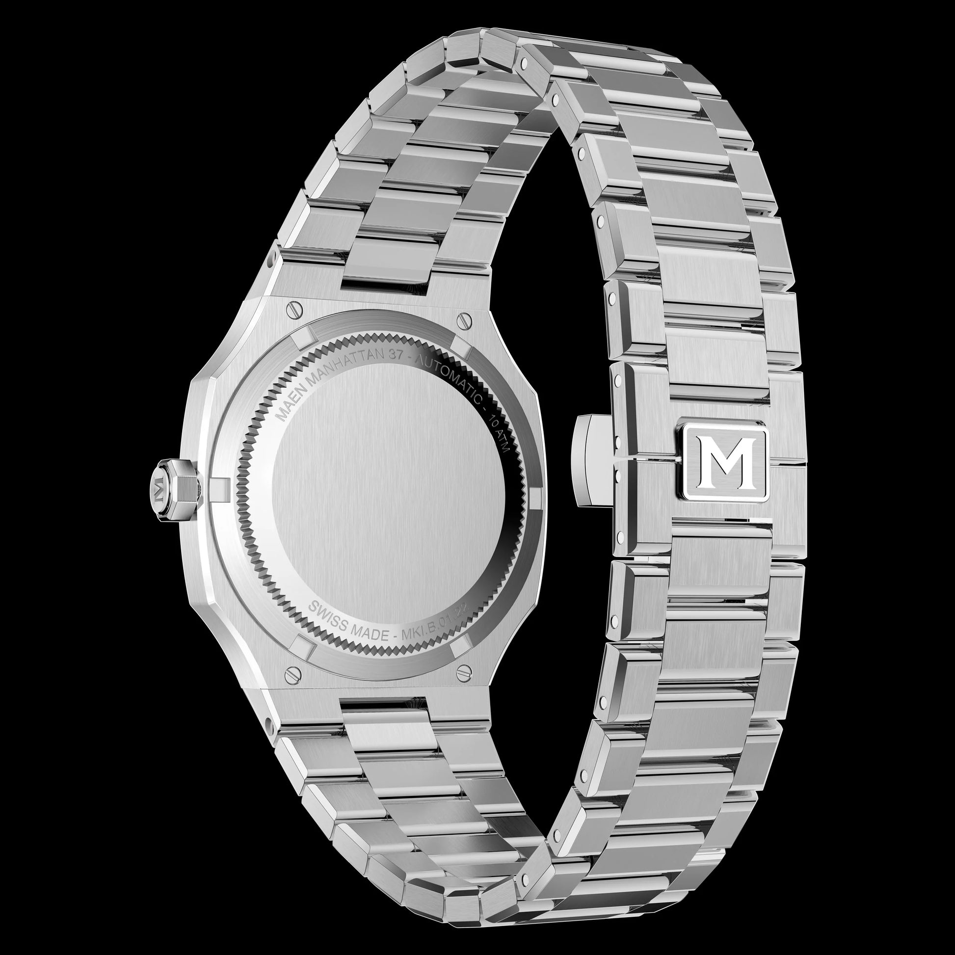 With its steel case, vertically elongated octagonal bezel, Côtes de Genève dial and integrated bracelet, the Manhattan 37 packs a lot of punch. Due to the integrated design the watch wears larger than its modest 37 mm would suggest.
