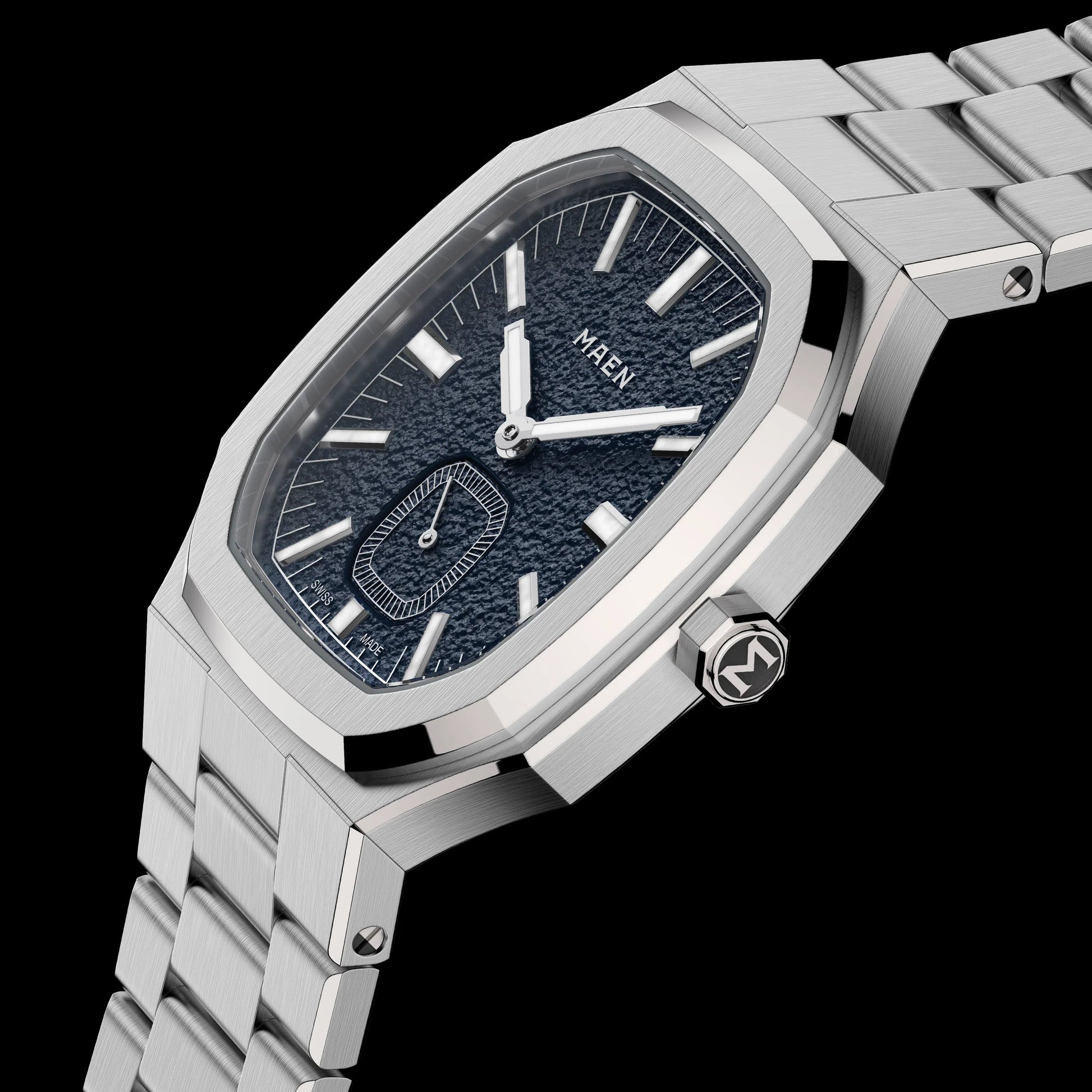The Manhattan 37 Ultra-Thin features an integrated stainless steel bracelet with a hidden deployment clasp. We did not cut any corners with this bracelet.