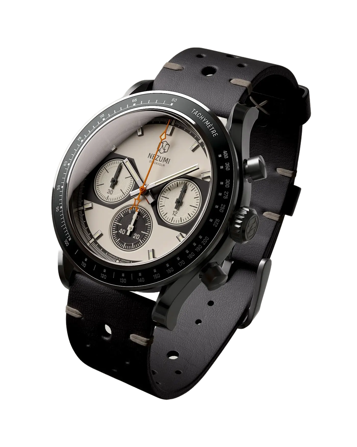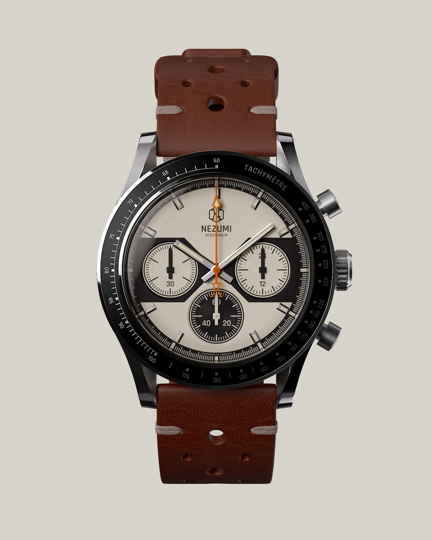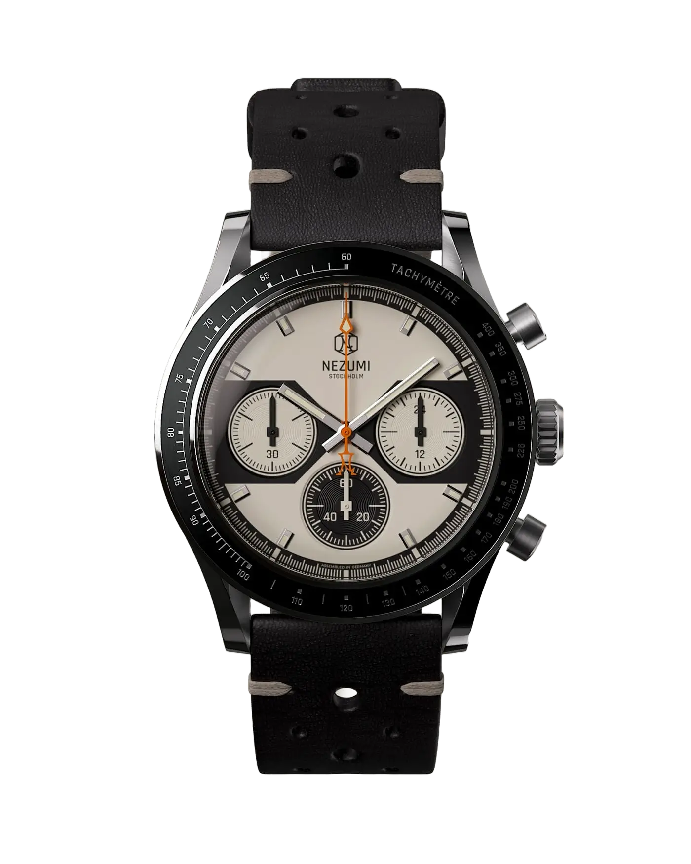 Assembled in Germany, Voiture ( French for automobile ), with its funky, 70s-inspired dial, is the grandfather of our collection. First released in 2015, it represents Nezumi designer and founder David Campo’s take on a classic, race-themed watch. The Voiture features a fixed bezel with a tachymeter scale, allowing users to measure speed based on time, or calculate time based on speed. As true petrolheads, the Voiture embodies the very essence of our brand’s DNA.