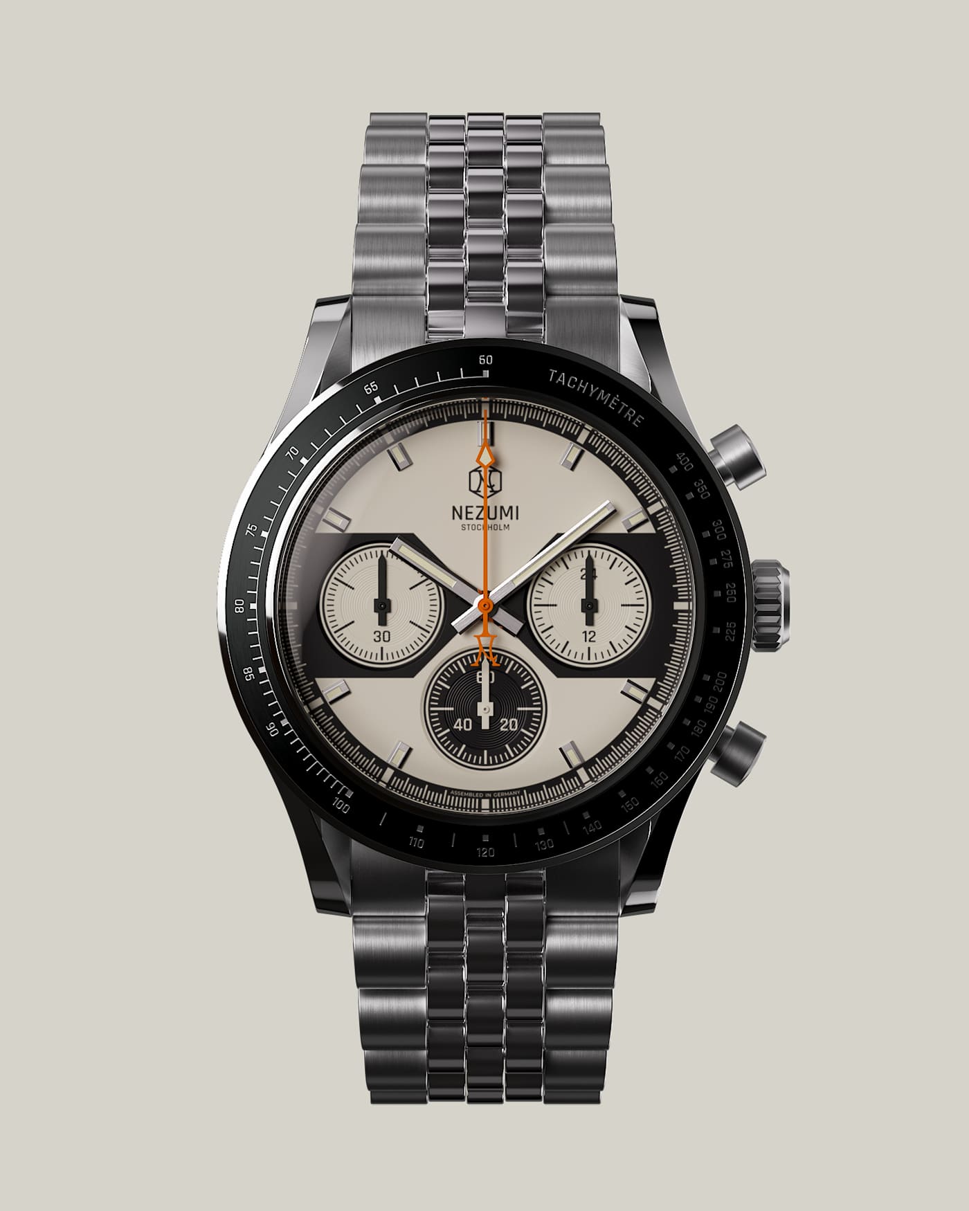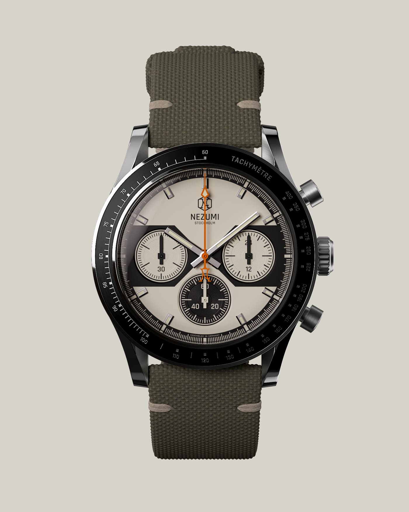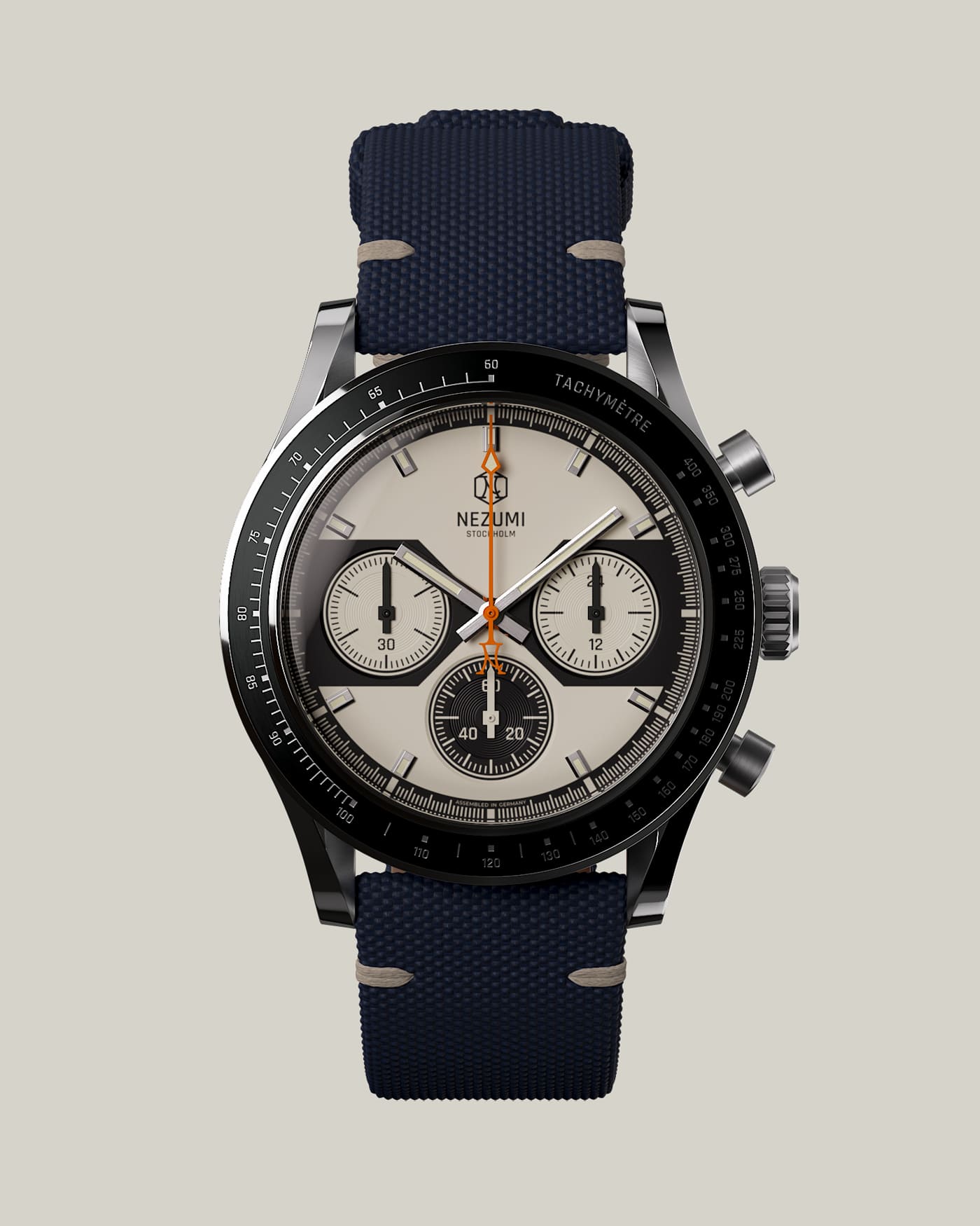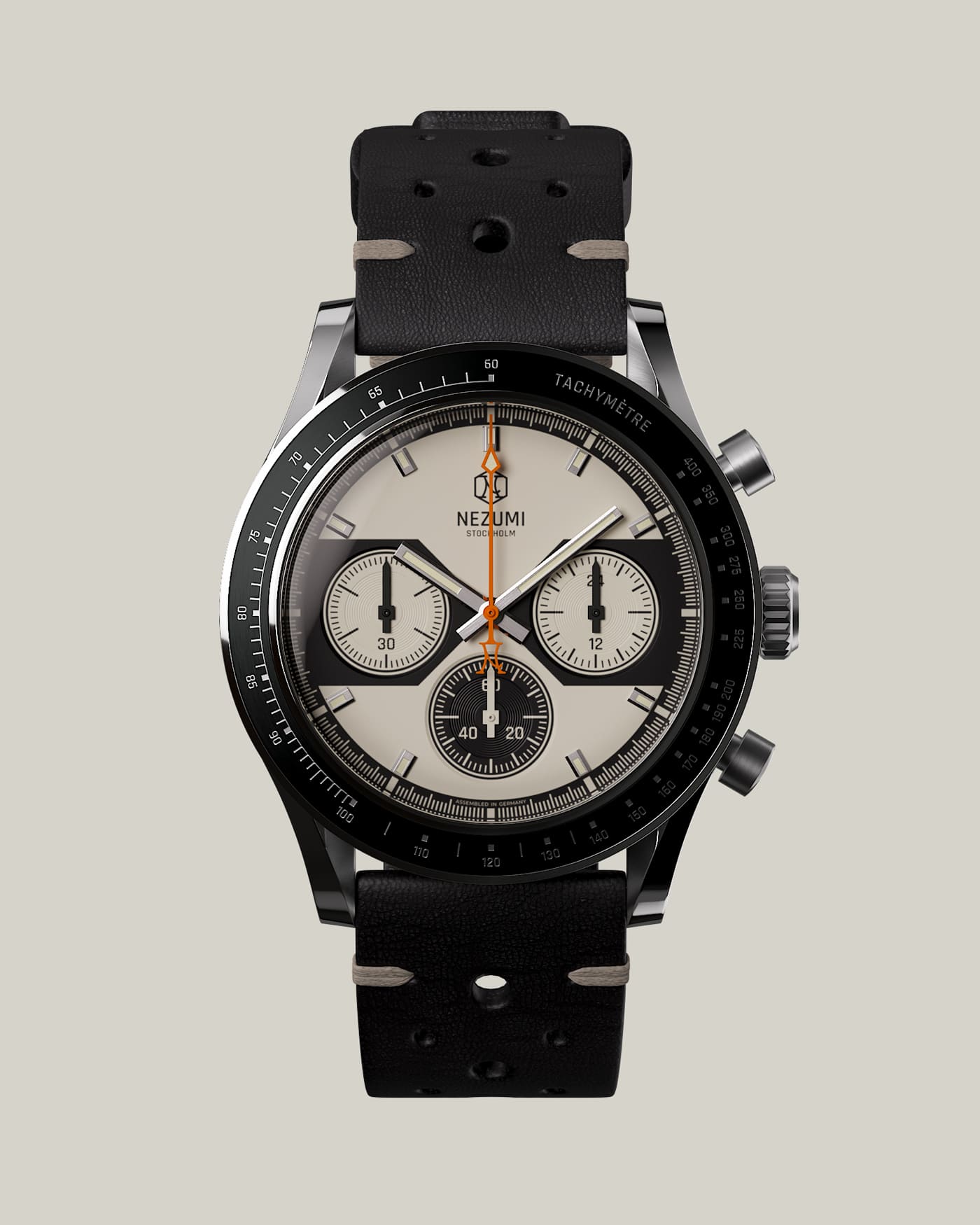 Assembled in Germany, Voiture ( French for automobile ), with its funky, 70s-inspired dial, is the grandfather of our collection. First released in 2015, it represents Nezumi designer and founder David Campo’s take on a classic, race-themed watch. The Voiture features a fixed bezel with a tachymeter scale, allowing users to measure speed based on time, or calculate time based on speed. As true petrolheads, the Voiture embodies the very essence of our brand’s DNA.