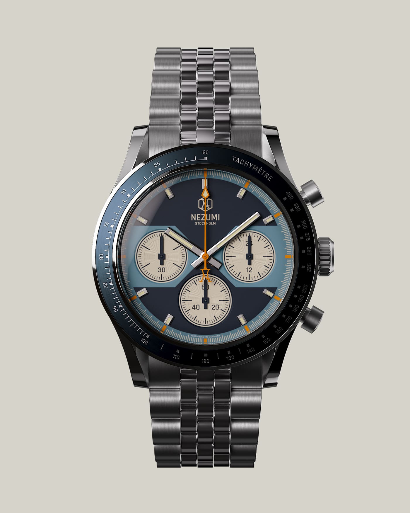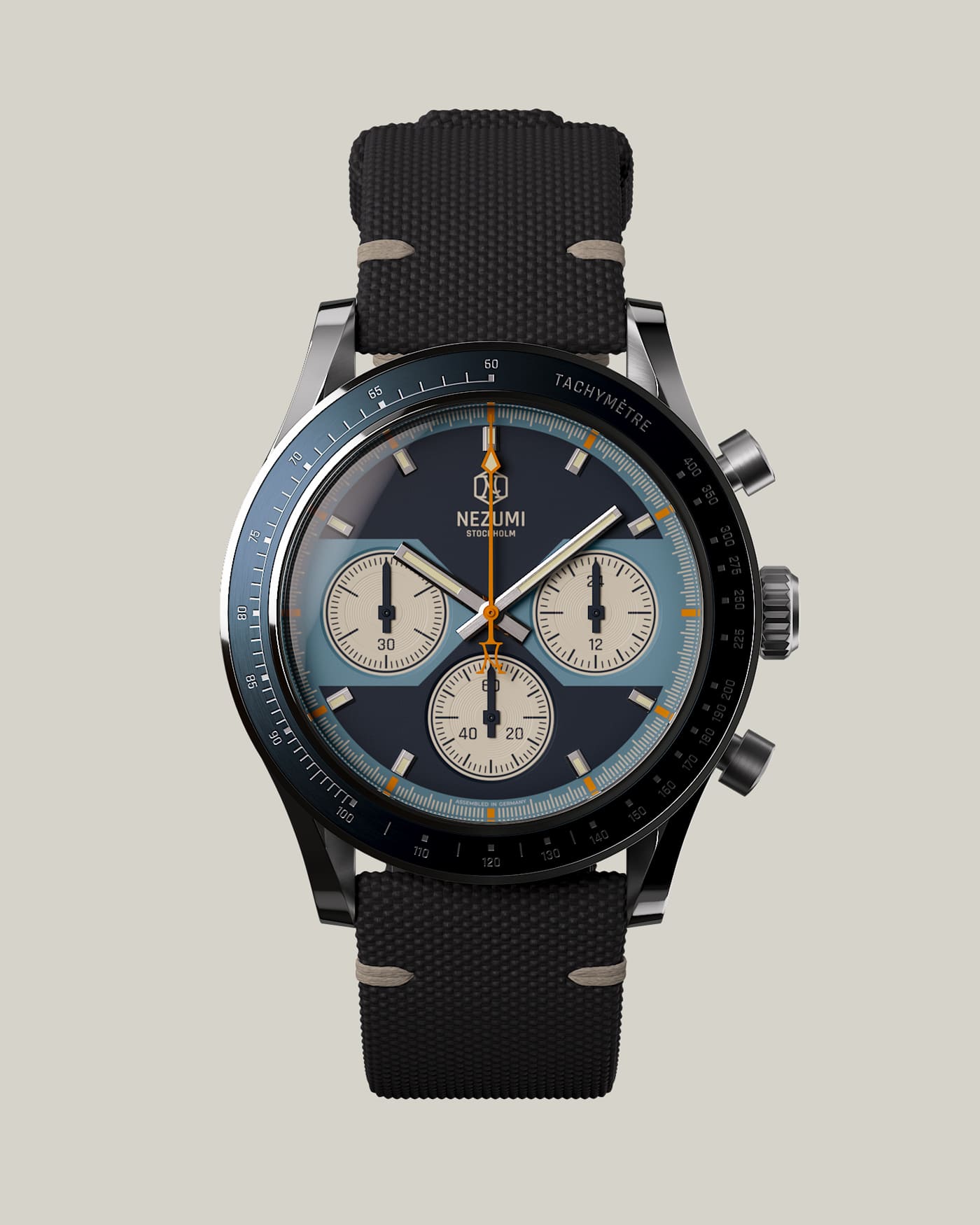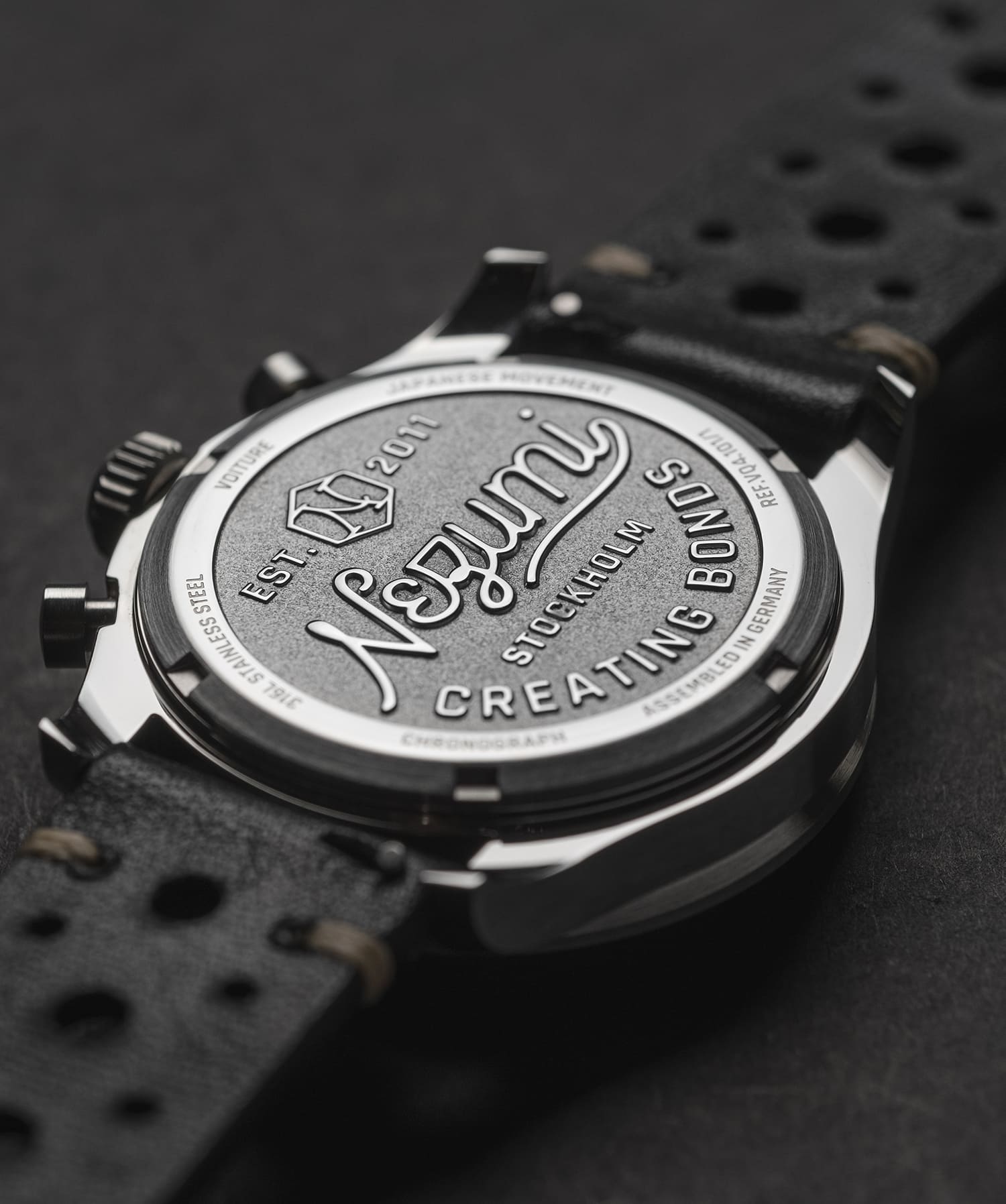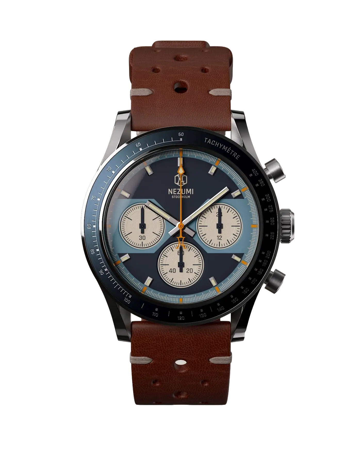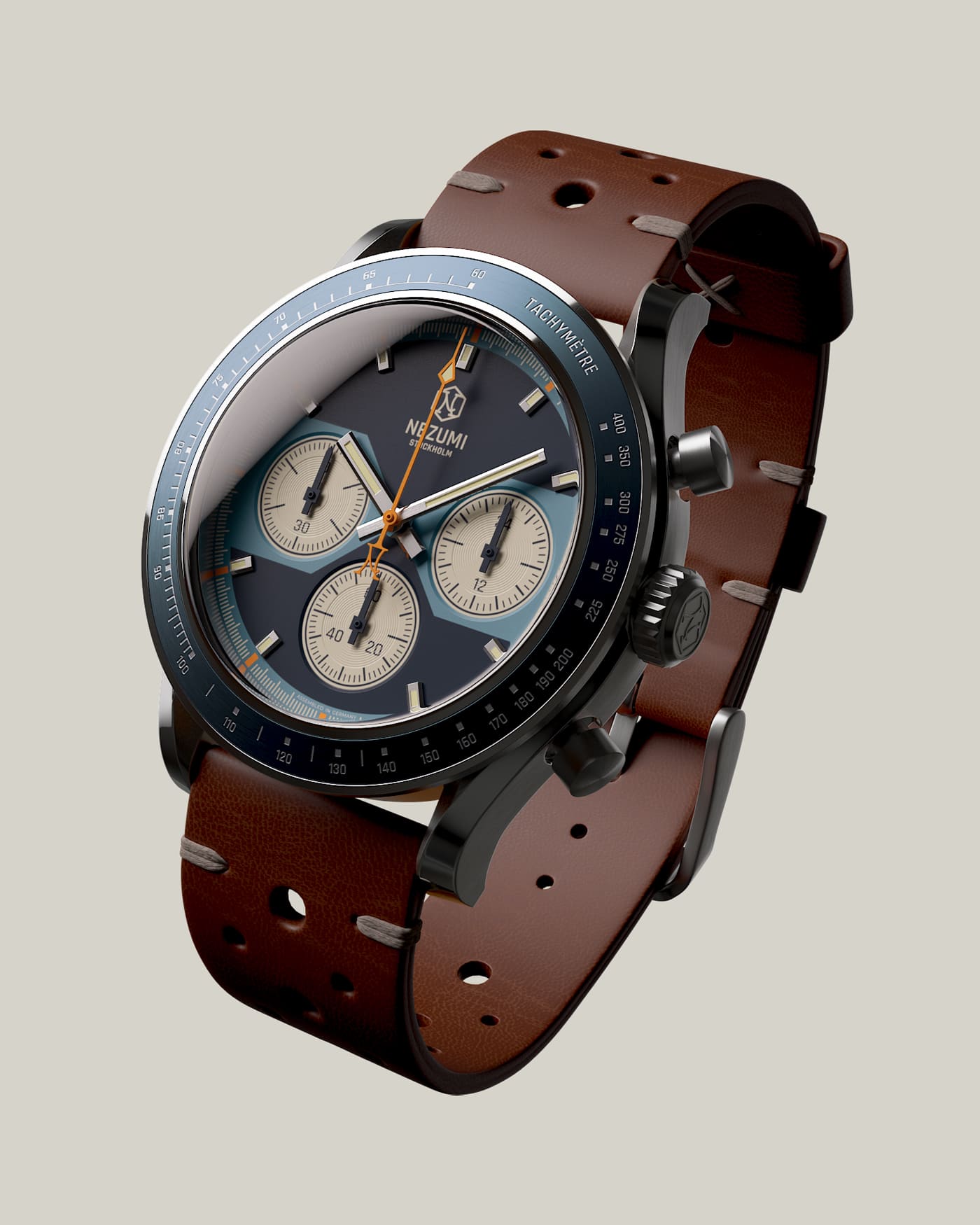 Assembled in Germany, Voiture ( French for automobile ), with its funky, 70s-inspired dial, is the grandfather of our collection. First released in 2015, it represents Nezumi designer and founder David Campo’s take on a classic, race-themed watch. The Voiture features a fixed bezel with a tachymeter scale, allowing users to measure speed based on time, or calculate time based on speed. As true petrolheads, the Voiture embodies the very essence of our brand’s DNA.
